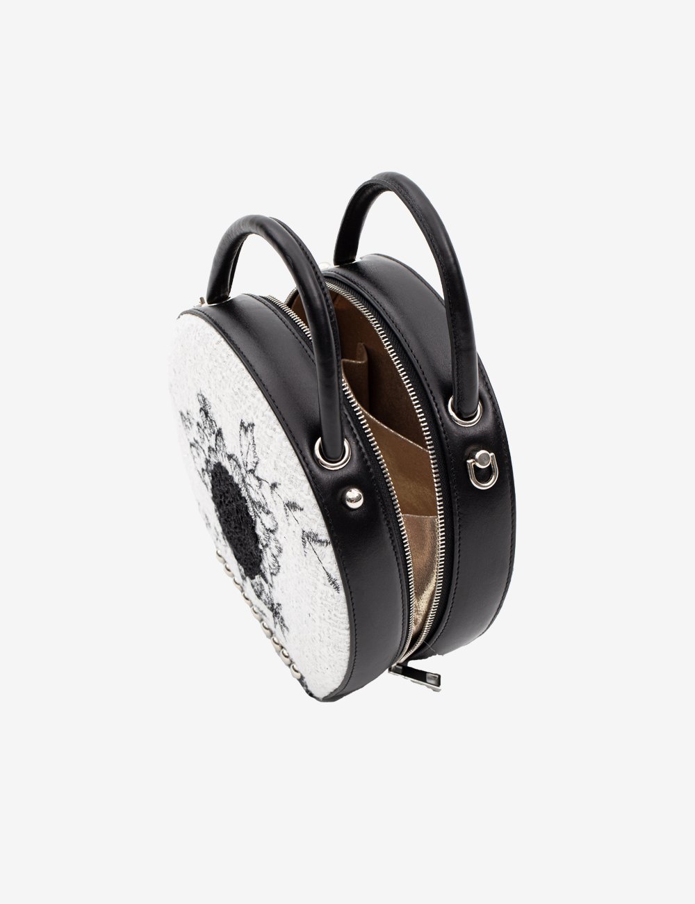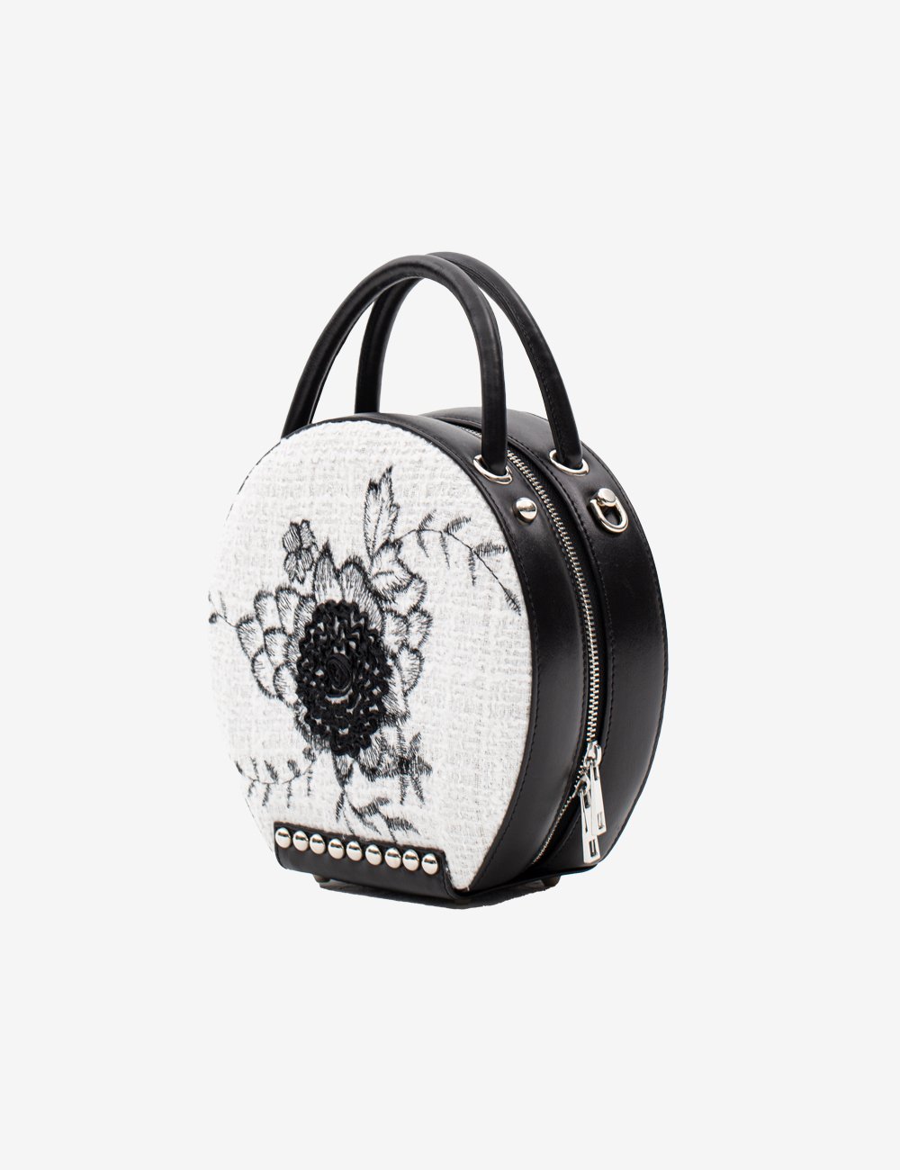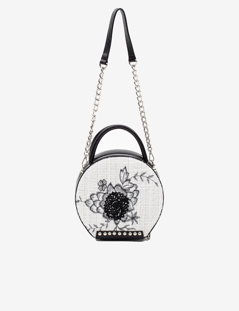 Çiçek işlemeli danteliyle dikkat çeken Scily El çantası, dana derisi bir kumaşa, iki kulpa ve ek boyun askısına sahiptir. Günlük ve gece kullanıma uygundur.